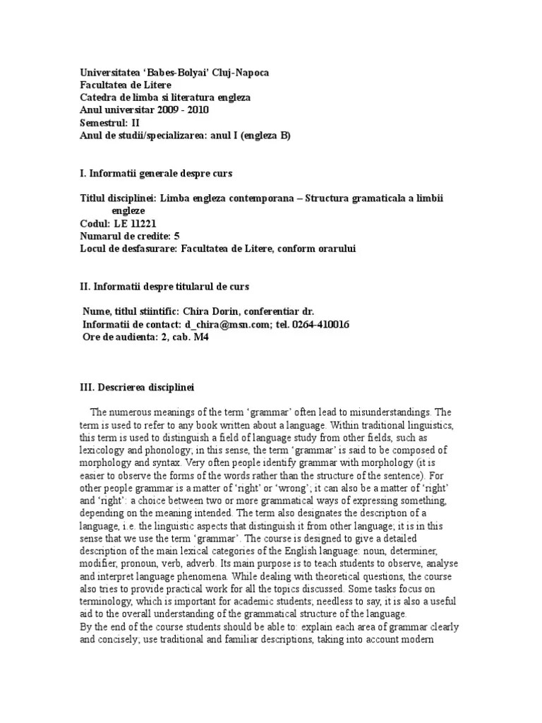 1 subiect pentru facultate din domeniul engleza... Catedra de limba şi literatura engleză îşi leagă existenţa de reînfiinţarea universităţii „regele ferdinand" în anul 1919 când a funcţionat ca lectorat de engleză în cadrul facultăţii de litere şi filosofie de atunci. Alege din cele 1 subiecte engleza pentru facultate oferite de graduo.ro pentru download. Ca şef de catedră a fost numit profesorul petre grimm. Membrii pot studia gratuit toate documentele disponibile. Departamentul de limbă și literatură engleză.. 8.82 facultate 62 your guide to learning english grammar: